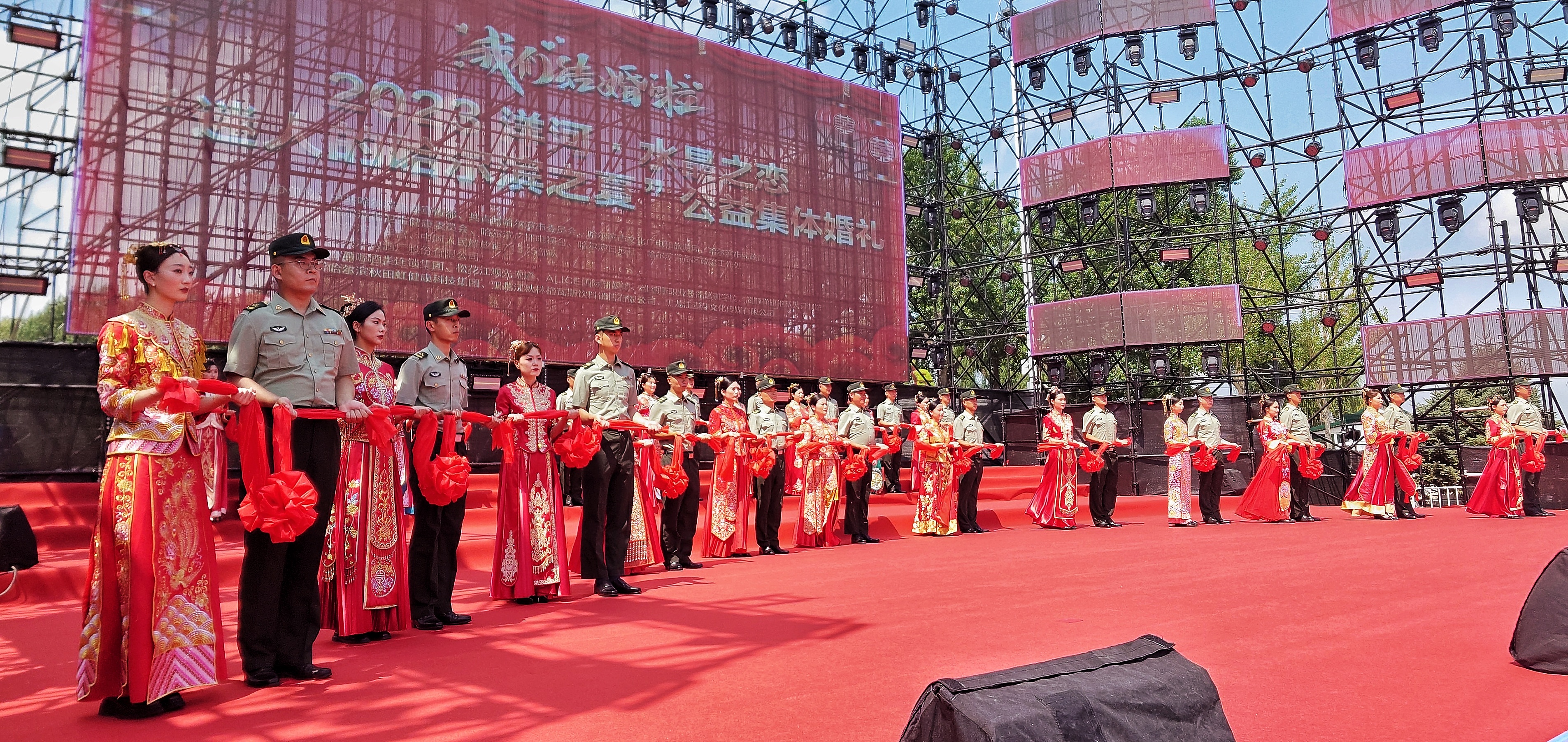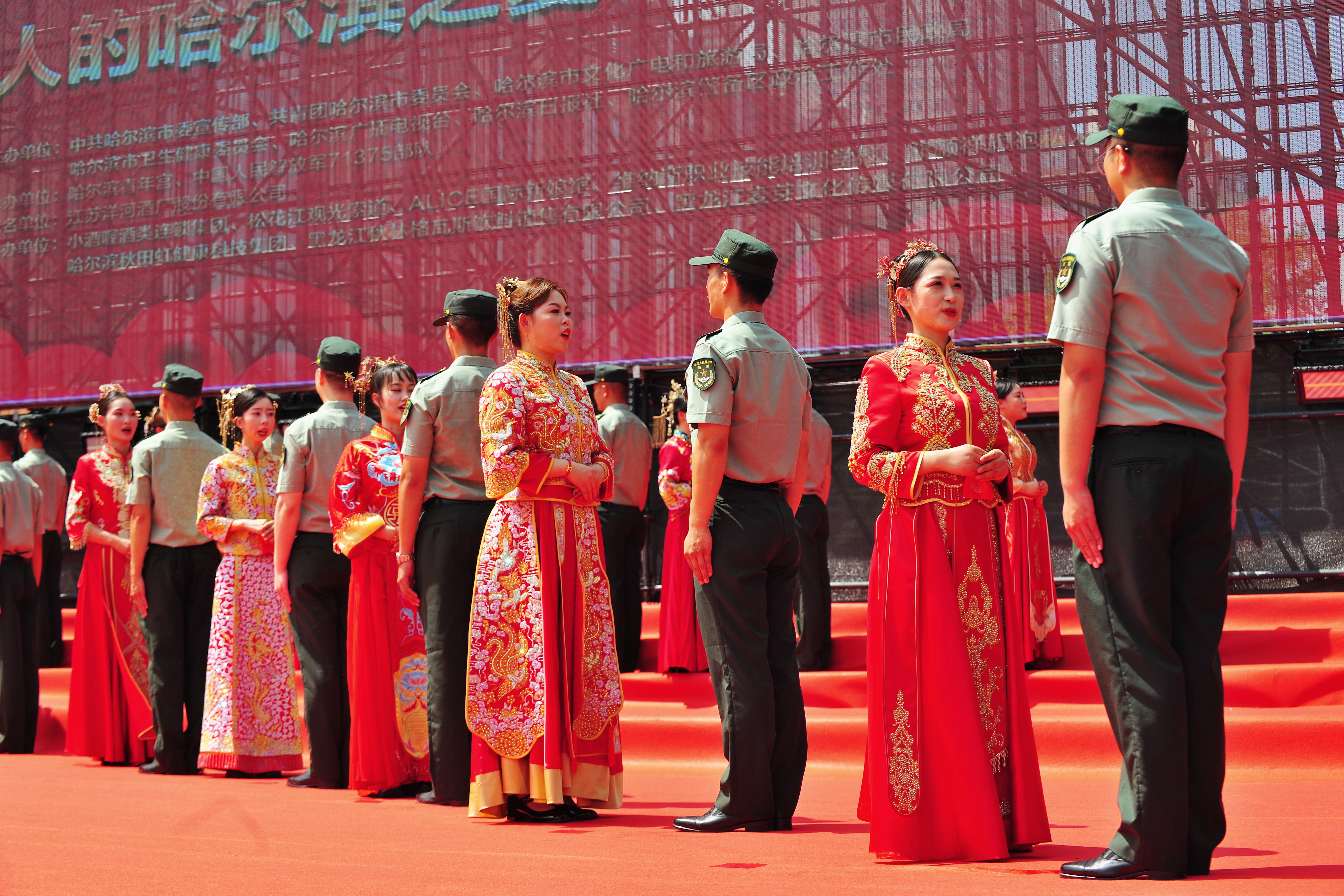 本屆公益集體婚禮由共青團(tuán)哈爾濱市委聯(lián)合中共哈爾濱市委宣傳部、哈爾濱市文化廣電和旅游局、哈爾濱市民政局等共同主辦,哈爾濱青年宮、中國人民解放軍某部隊(duì)承辦。