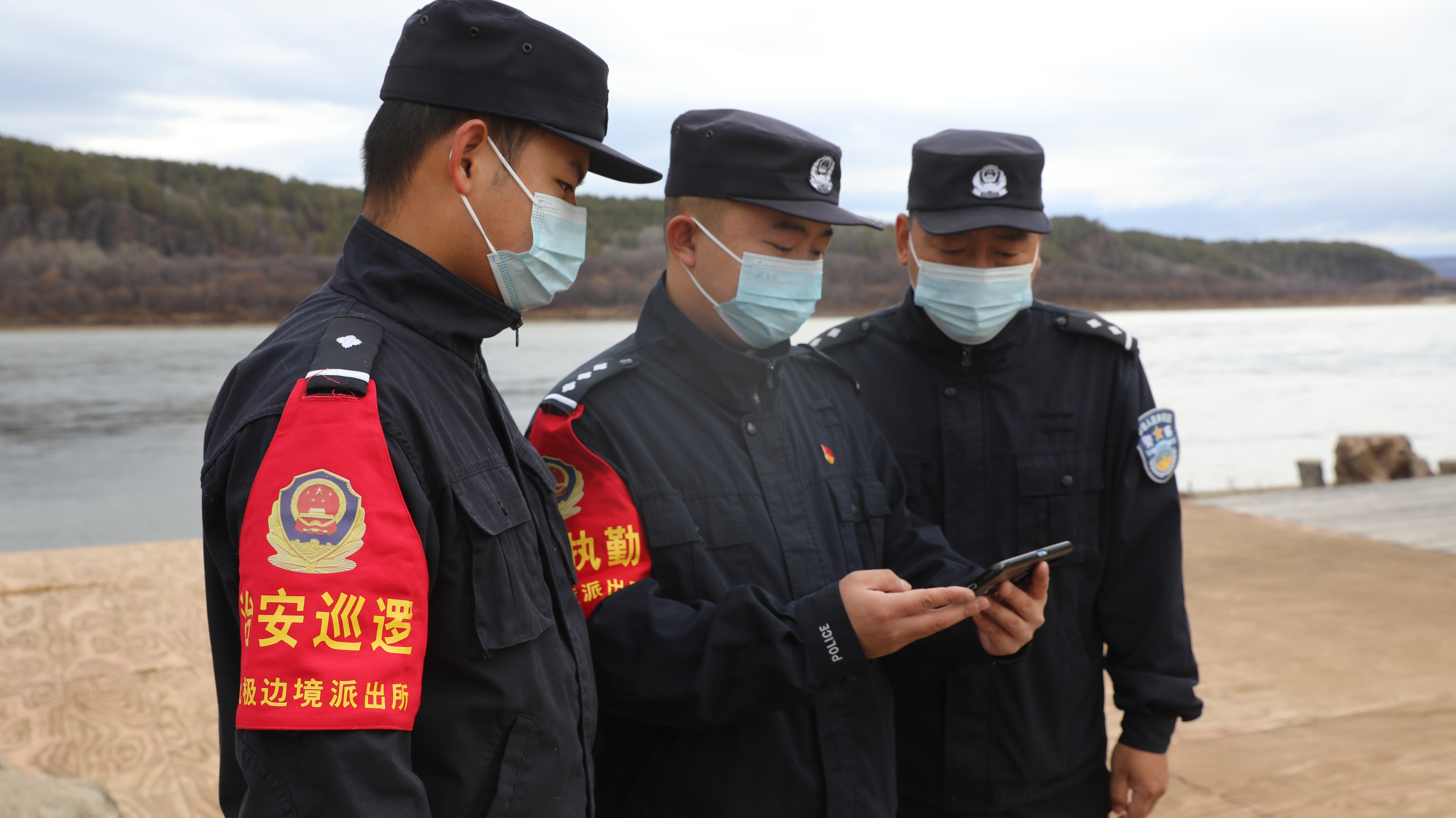 △北極邊境派出所警察收聽收看黨的二十大開幕盛況