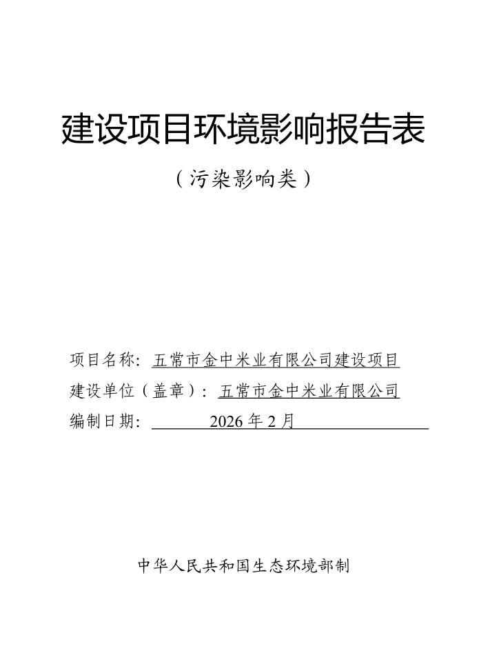 五常市金中米業(yè)有限公司建設(shè)項(xiàng)目環(huán)境影響報(bào)告表
